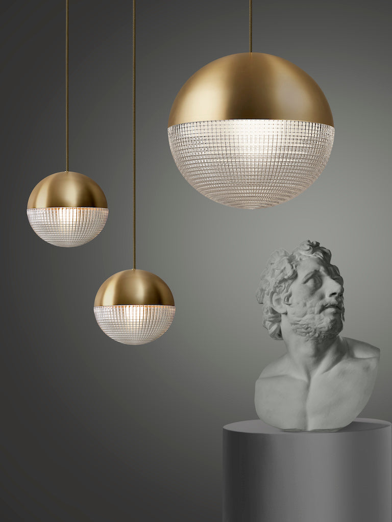 Inspired by telescopic lenses and the art of horizontal and vertical refractions, Little Lens Flair is a piece of two halves, seamlessly combining the solid and the transparent. A detailed cross-cut lens emits a soft deflected light, which is juxtaposed by contemporary solid casing in brushed brass or matte black finishes. The beautiful new piece is available as a Pendant Light, Table Lamp and Chandelier.
