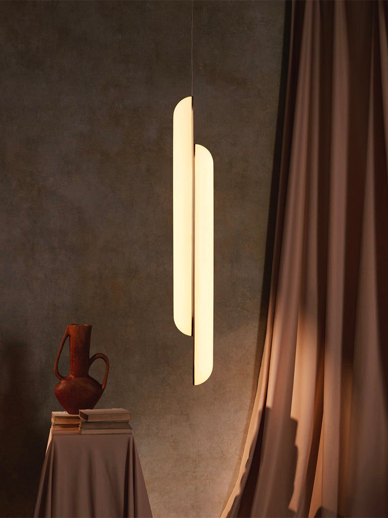 Gemini explores the classic characteristics of the astrological sign as well as serving a nod to the equipment, crucibles and flasks used in alchemical workshops. This elegant light fixture is a piece of two opposing halves which connect asymmetrically to create one linear illuminated product. To be hung horizontally or vertically, Gemini is formed of an illuminated capsule which is sliced and shifted to reveal a brushed brass facia, sharing similar characteristics to Broom’s iconic Crescent Light where every element of construction is hidden.