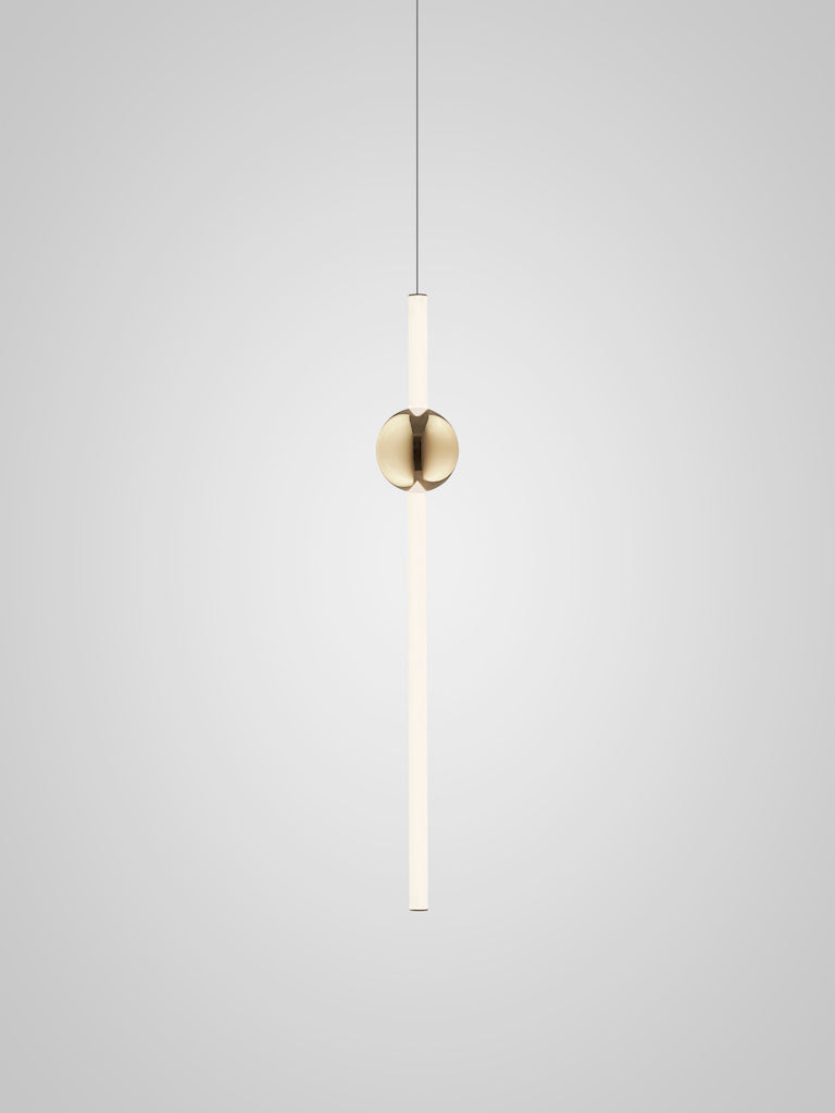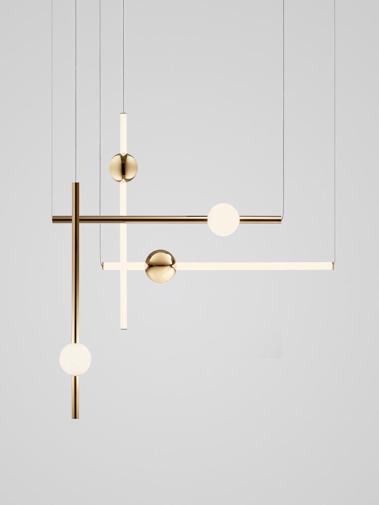 Orion comprises simple modular lights with opposing opaque and solid polished gold spheres along with opaque and solid gold tubes. These connect and expand horizontally and vertically to create bespoke constellations of light with infinite adaptations.